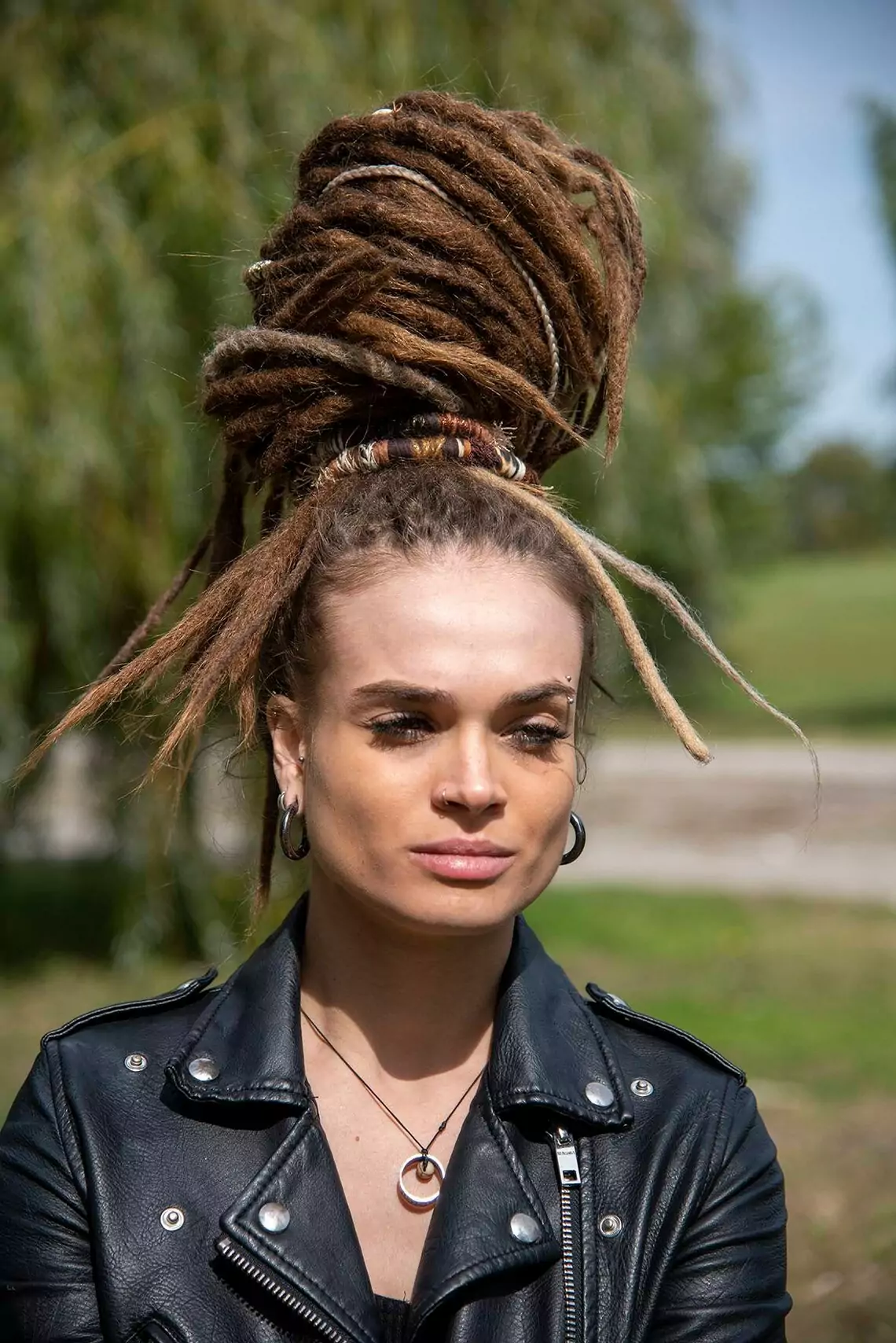 Wenn dein Haar sehr dick ist, empfehlen wir ein längeres Wrap, um deine Dreads hochzustecken. Du kannst ganz einfach einen tollen Dutt machen, einen hohen Pferdeschwanz machen oder sogar ein Kunstwerk mit deinem neuen schönen biegsamen Dread Wrap Dreadlocks Spirale basteln. Möchtest du deine Dreads nach oben stecken, dann stellst du sanft die Festigkeit ein und deine Dreadlocks werden in in Sekunden nach oben gesteckt sein. Sehr Viele verschiedene kreative & praktische Dreadfirsuren sind so möglich! Jeder Tag eine neue Frisur für jeden Anlass! Dreadlocks Hochzeit Hochsteckfrisuren, Zopf für Dreadheads. Das perfekte & praktische Dreadhead Accessoire für unterwegs!
